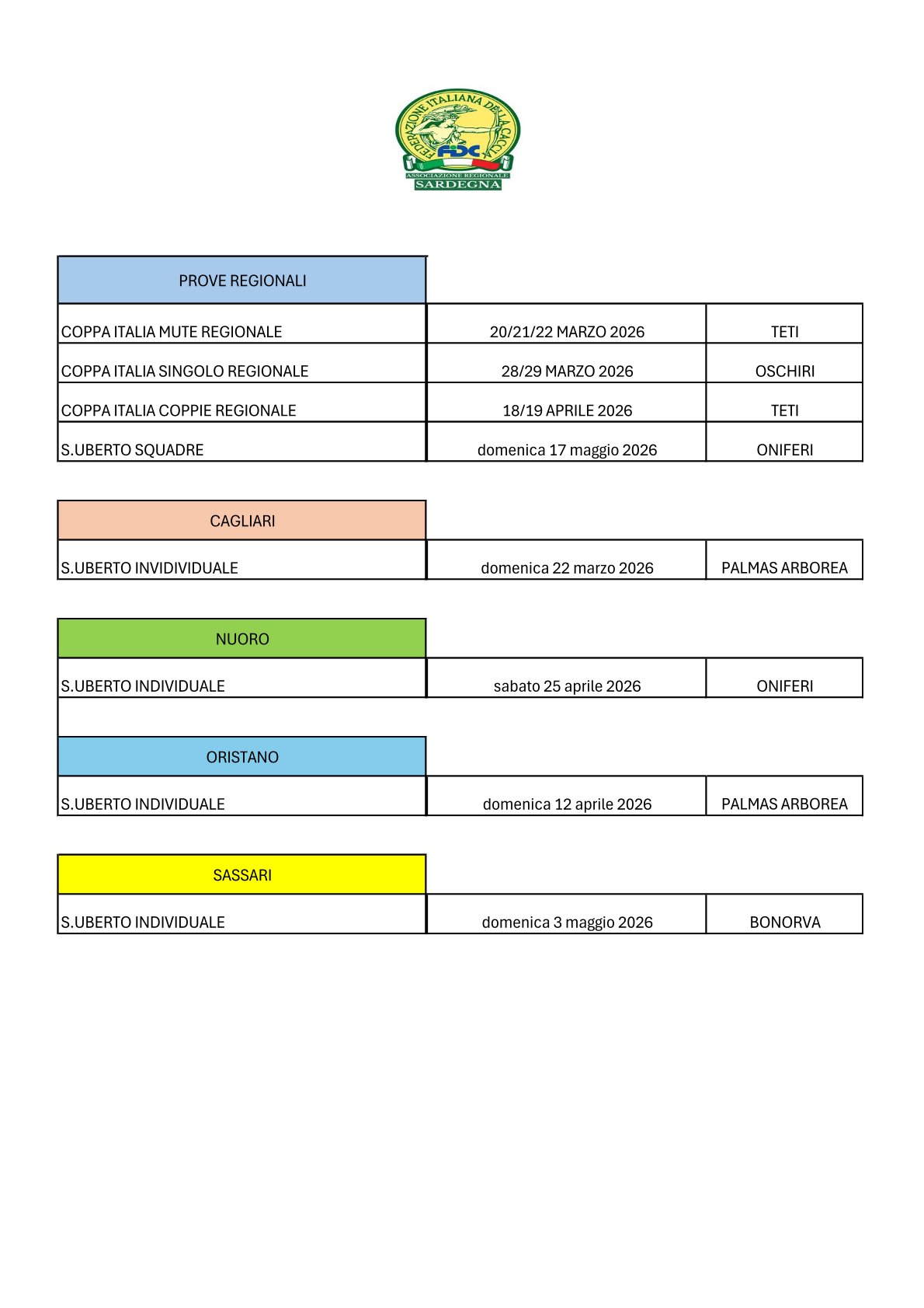 CALENDARIO VENATORIO 2025-26